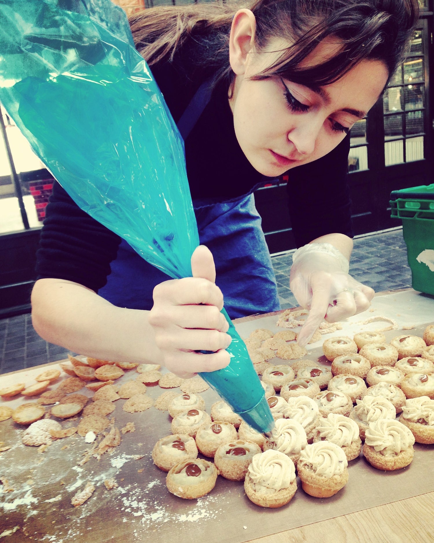 I missed the classic chocolate religieuse and coffee eclairs in Paris. I decided to make it my mission to bring classic French 'choux' to London. After a few weeks of recipe development, I naively convinced my little sister to help me run a market stall in Old Spitalfields. We started selling out every day in Old Spitalfields market, the pastries proved so popular that since, we have been part of London's booming food scene, taking part in markets and events with Kerb, various pop- ups around London as well as supplying luxurious food department stores Fortnum and Mason and Selfridges.